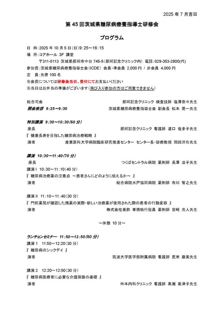 2025/8/5 2025年10月5日(日) 第45回茨城県糖尿病療養指導士研修会