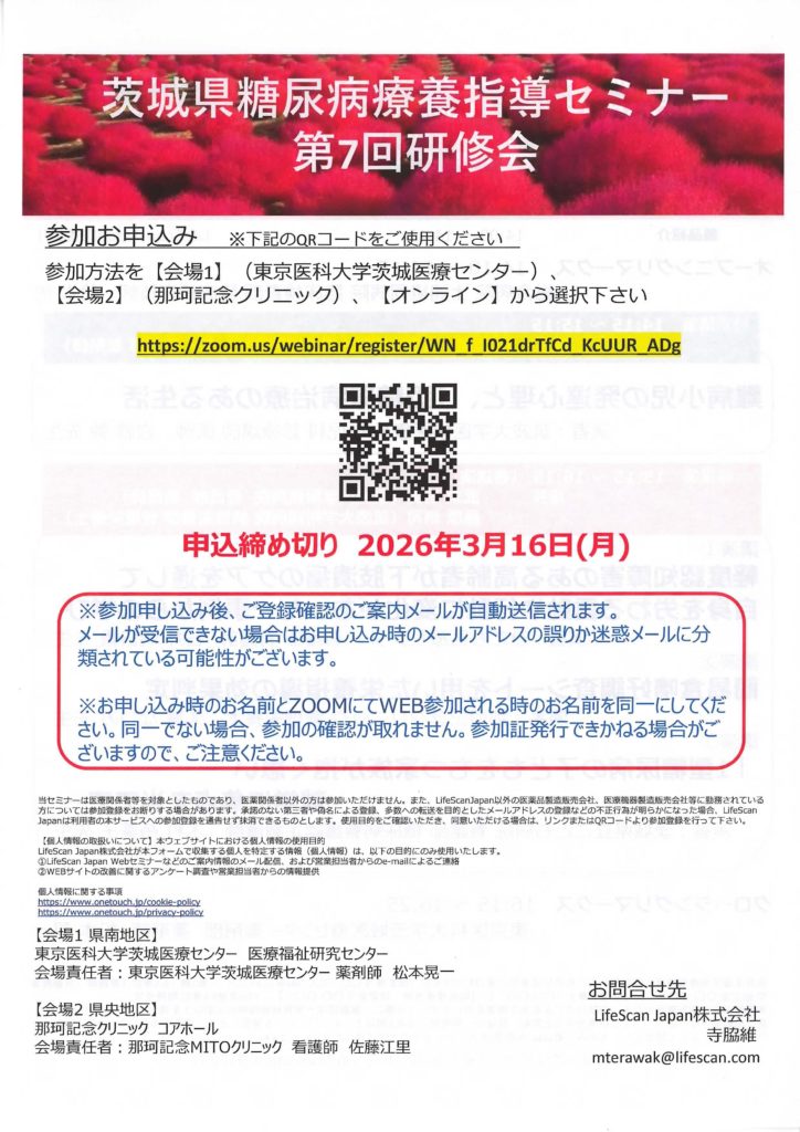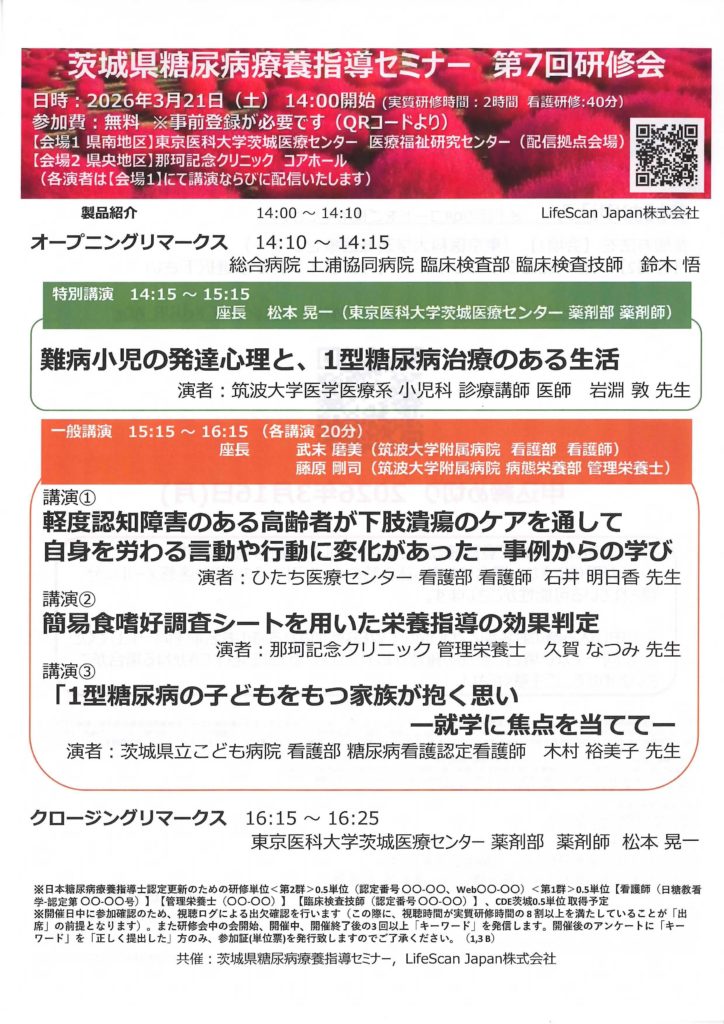 2026/2/4 2026年3月21日(土) 茨城県糖尿病療養指導セミナー 第7回研修会